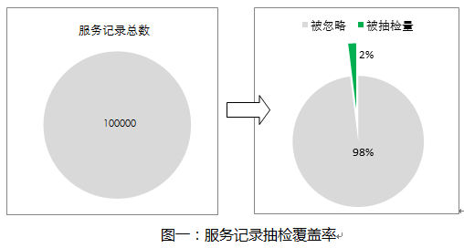 假设一个客服中心每天产生10万条服务记录,这样的客服中心坐席规模大致1000人左右。行业内坐席数量和质检团队一般按40比1配置,可以计算出质检团队人数在25个左右,按质检员单人产能80个样本计算,每天最大质检量不过2000条。也就是说受质检团队最大工作量承载限制,实际上每天有98%的服务录音未被检测,只能通过被抽检到的这2%的样本去推测整体服务品质,至于那98%的服务过程是否合规、是否存在差错、服务品质优劣,都因为处于质检团队监控的盲区,所具备的数据价值和存在的问题根本就没有被呈现出来,而处于运营管理的不可控的状态。