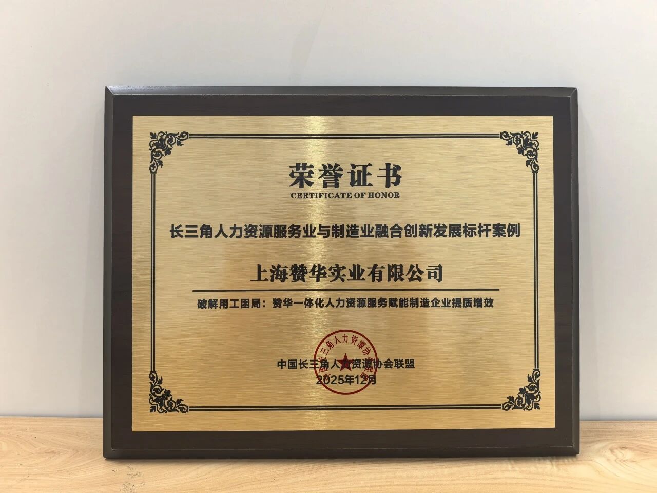 大会紧扣国家制造强国战略,深度解读《关于加强人力资源服务助力制造业高质量发展的意见》等政策,发布《中国长三角人力资源协会联盟(苏州)倡议》及产业融合创新案例。赞华集团凭借“破解用工困局:一体化人力资源服务赋能制造企业提质增效”项目荣获“长三角人力资源服务业与制造业融合创新发展标杆案例”。