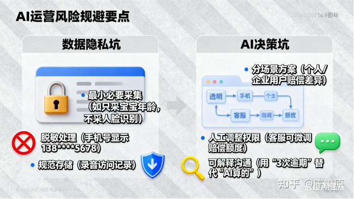 AI 运营时,很多企业只盯着 “效率”,却忽略了 “数据合规” 和 “用户信任”—— 这两个坑不避,再强的数据驱动也会翻车。