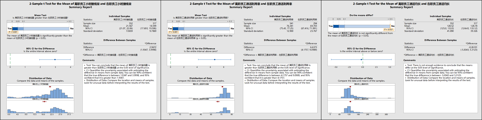 1.离职员工的“通话利用率”,“小时接线量”都超过在职员工;