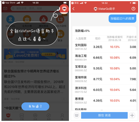 结合自然语言处理和深度学习等技术,机器人多轮对话与业务场景有效融合,客户只要说说话就能找到他想要的各种产品、服务、人、股票等信息,覆盖各种客服和投顾类问题。