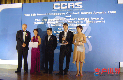 2006年10月27日,新加坡。[客户世界消息]第三届亚太地区最佳呼叫中心评选颁奖典礼今天在新加坡Ritz Carlton酒店隆重举行,上海微创软件有限公司获选本年度亚太最佳外包呼叫中心(铜奖)。