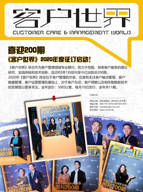 转载请注明来源:喜迎200期-《客户世界》杂志2020年度征订启动