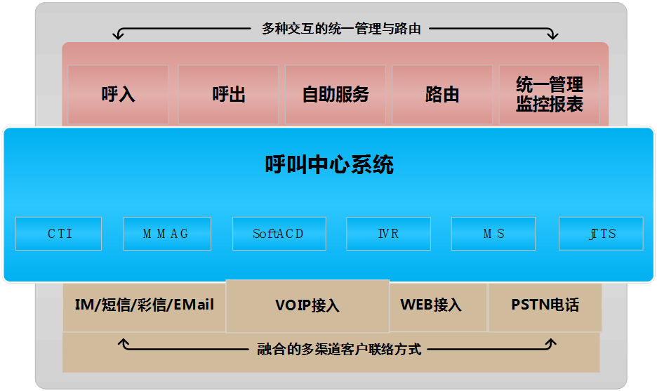 同时,还会有一个统一运营管理,来对所有呼叫平台上的数据进行统一分析、统一管理,为以后做大数据分析和客户画像奠定数据基础。
