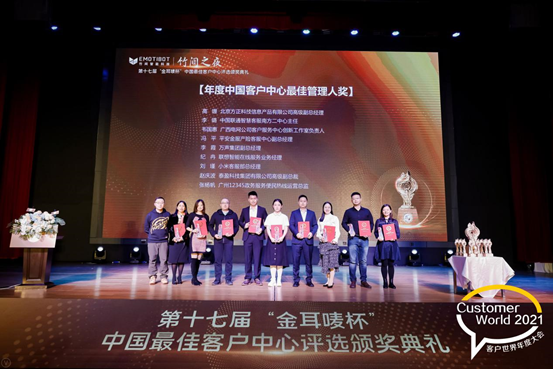 10月19日,北京。客户世界消息:2021第十七届“金耳唛杯”中国最佳客户中心评选颁奖典礼在北京-荣华天地酒店隆重举行。小米、联想、度小满金融、蚂蚁集团、惠氏营养品、国家电网、南方电网、中移在线、杭州微拍堂、腾讯云企点客服、渤海银行、携程旅行网、昆山农商银行、中信保诚人寿保险以及上海、广州、杭州的12345政府热线等一批知名企业的客户中心获得各奖项荣誉。
