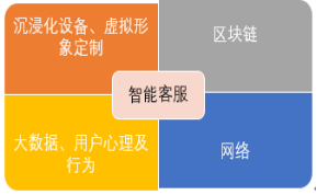 智能客服的未来发展将主要包含:虚拟服务场景沉浸化、区块链、大数据、自然语义研发、虚拟客服的形象定制、社区化服务陪伴等(图1),这些领域都在不断地将智能客服的仿真体验做到更为生动。未来的智能客服将设计用户生活全场景,主观体验更为高效便捷,系统为用户提供的信息也将更为精确。其应用广度目前集中于交互性强、虚拟化为主体的行业,如社交平台、游戏、旅游娱乐等行业。