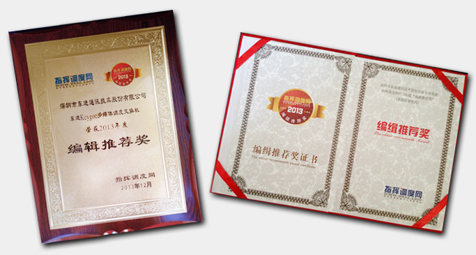 图:东进技术获2013年度编辑推荐奖奖牌和证书